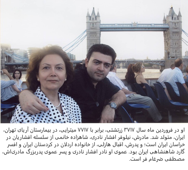 started researching the history of not so long ago from the expeditions of my maternal eleventh ancestor Nader Shah Afshar and learned about ancient by reading the History of Ancient by the late great man of politics and culture, Moshir od-Dowleh Hassan Pirnia. My keen interest in painting and art during childhood made me closer to the late husband of my aunt Bahram Pirnia, a prominent artist who had graduated from the College of Fine Arts, the University of Tehran, from whom I learned a lot.